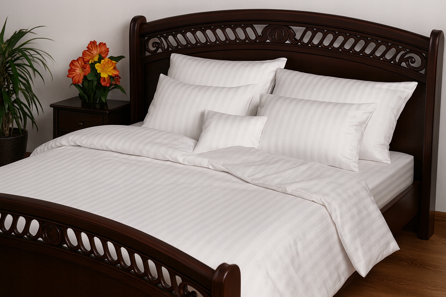 Oferujemy komplet wysokiej klasy pościeli bawełnianej o wymiarach 160×200 + 2×70×80 cm – idealny zarówno do domu, jak i do eleganckiego pokoju hotelowego.