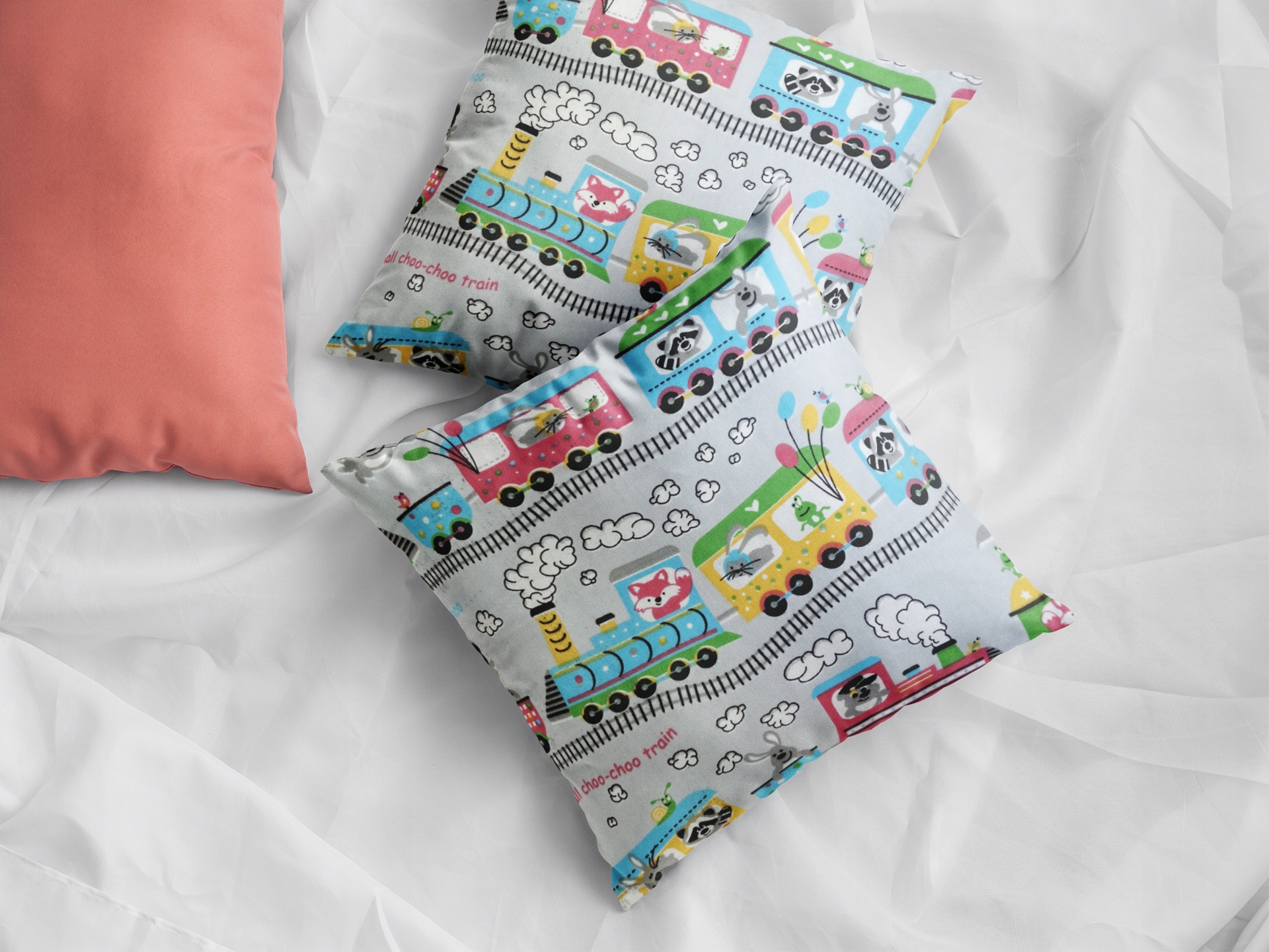 Poszewka na Poduszkę 40×40 Jasiek Jaś Bawełniana na Suwak Ciuchcia W4